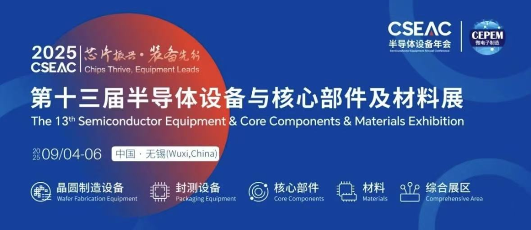 第十三届半导体设备与核心部件及材料展(CSEAC 2025),2025年9月4日至6日,将在无锡太湖国际博览中心举行。